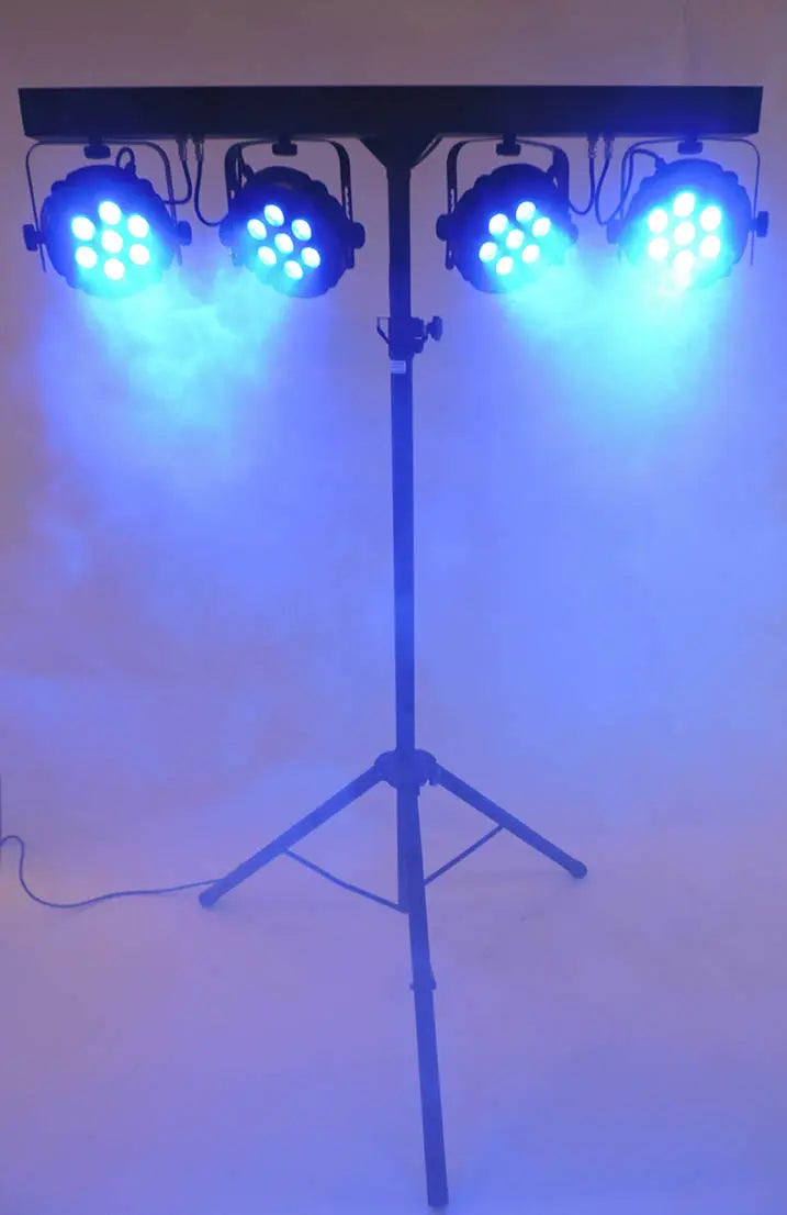 4 parren op een statief voor het ultieme disco gevoel, de parren kunnen in elk gewenste kleur knipperen. Maar ook ideaal te gebruiken als statische verlichting om bijvoorbeeld je zaal uit te lichten.